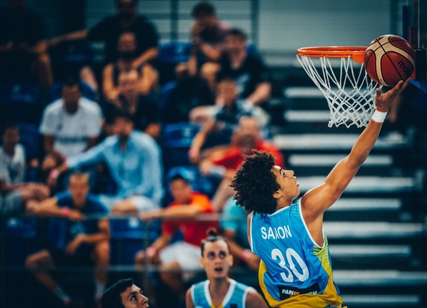 У другій чверті також було багато боротьби, причому в деяких епізодах емоції починали захльостувати. Тепер вже 10-хвилинний відрізок виграла українська команда, в складі якої продовжував феєрити Санон. Захисник закрив першу половину ефектним флоатером і набрав за 20 хвилин 18 очок при 70% реалізації кидків з гри. Збірна України пішла на велику перерву, маючи 4 очка переваги.