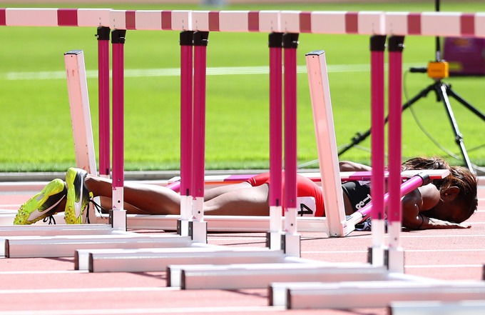 Во время забега на 100-метровой дистанции с барьерами, который состоялся в рамках чемпионата мира по легкой атлетике в Лондоне, спортсменка из Тринидада и Тобаго Дебора Джон зацепилась за барьер и упала.