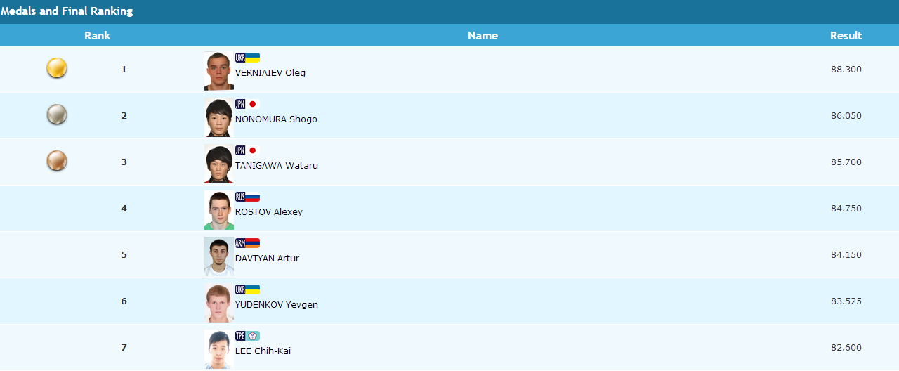 Еще один украинский гимнаст Евгений Юденков (83.525 балла) занял шестое место.