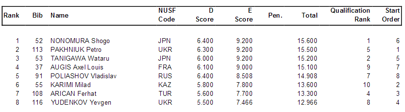 Украинец Евгений Юденков заял восьмое место с результатом 12.966 балла.