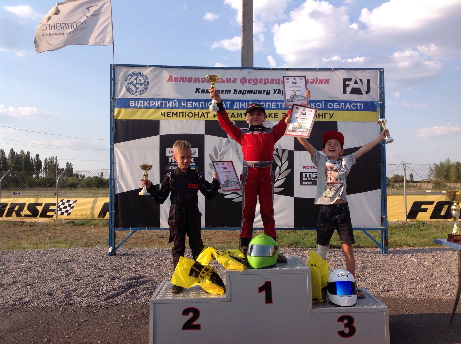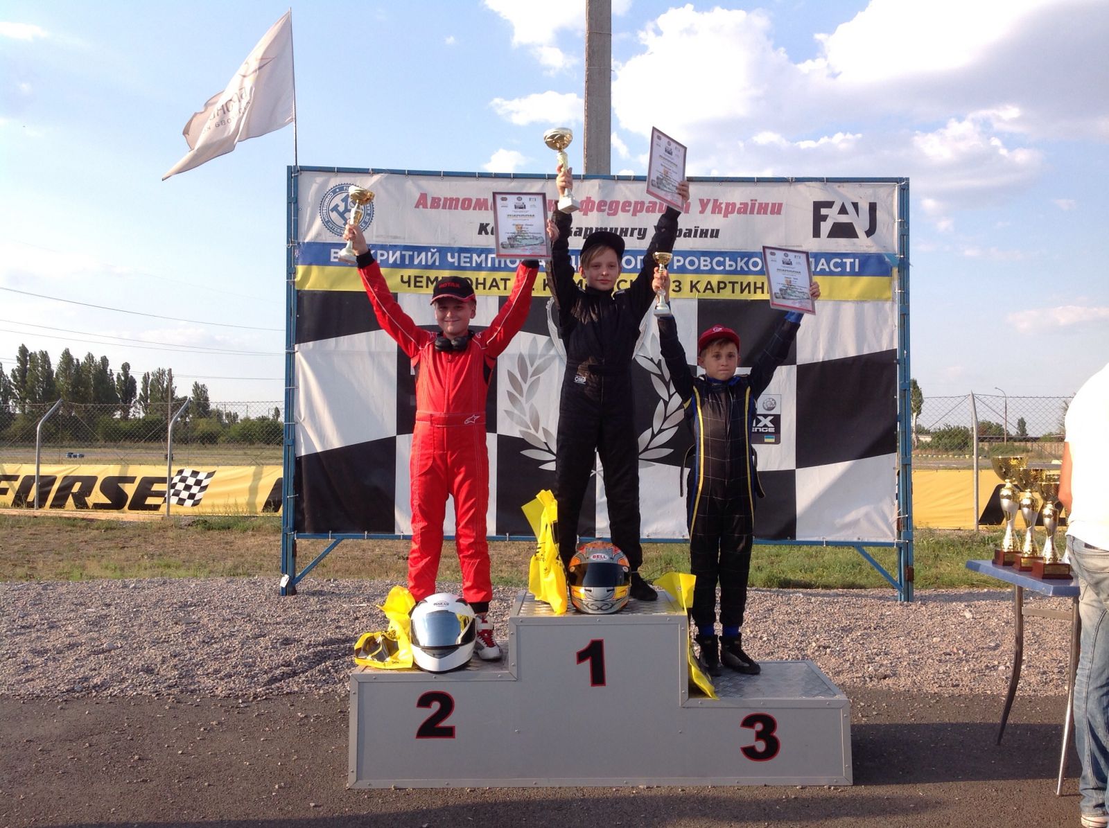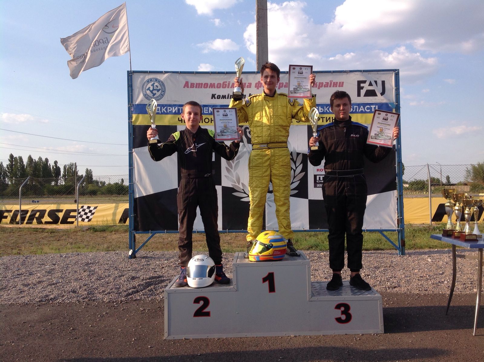 Підсумок етапу – Павло Лякса, Пилипенко Ярослав, Рябошапка В’ячеслав. Всі пілоти – представники команди Dnipro Kart.
