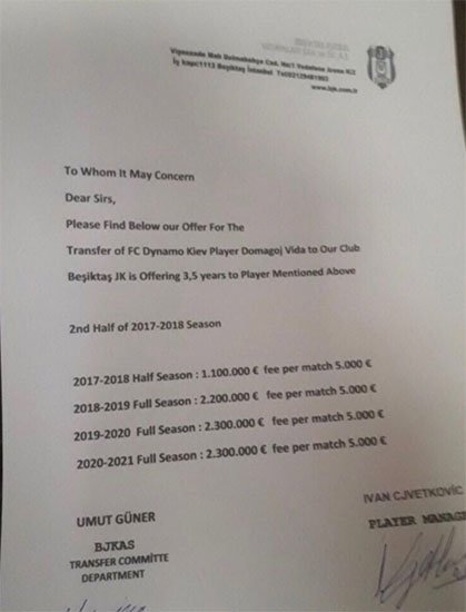 Опубликован предварительный контракт Домагоя Виды с Бешикташем