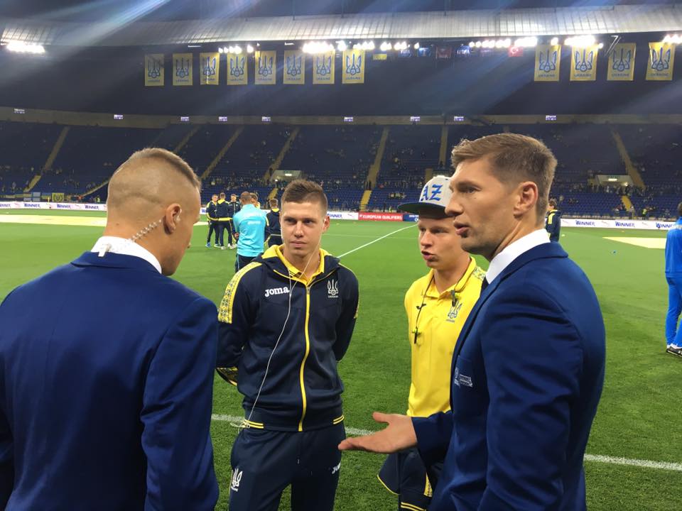 Бывшие футболисты национальной команды, а ныне футбольные эксперты В'ячеслав Шевчук та Євген Левченко настраивают футболистов на победу.
