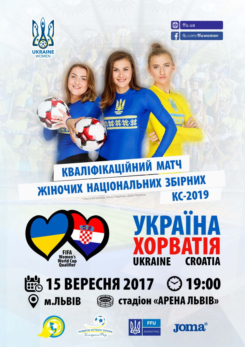 15 вересня, о 19:00, на «Арены Львів» (м. Львів) національна жіноча збірна команда України з футболу проведе перший матч кваліфікації КС 2019. Суперником українських дівчат стане збірна команда Хорватії.