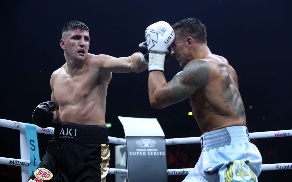 Поєдинок в Берліні відкривав Всесвітню боксерську суперсерію, яка вже встигла зібрати мільйони прихильників по всьому світу. Не зважаючи на статус фаворита, Олександр Усик прекрасно розумів труднощі, з якими мав зустрітися - нахабна поведінка Хука стала помітна вже на прес-конференції. З перших секунд боксери вирішили не форсувати події, а тому перші два раунди пройшли в повільному темпі. Починаючи з третього, український чемпіон ввімкнув іншу швидкість і німецький опонент ледь не змушений був перейти в режим виживання. Серійні комбінації, потужний аперкот та бокові удари - Хук пропускав все, що летіло і тільки гонг врятував від неминучого падіння на канвас.