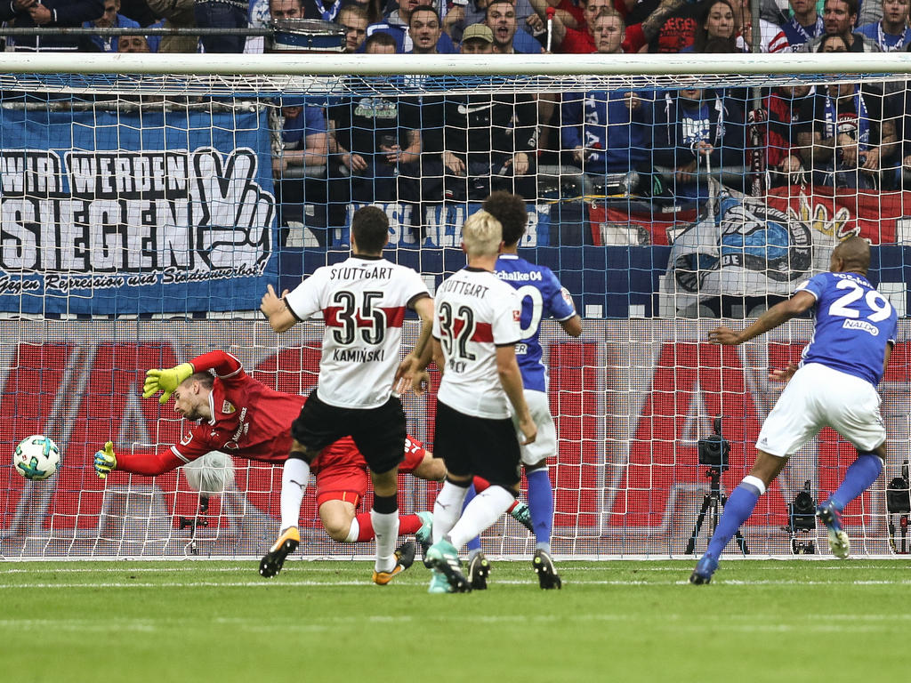 После этого «Шальке» принялся играть от обороны, снова пытаясь подловить соперника на ошибке или убежать в контратаку. Один из таких выпадов завершал Коноплянка, в касание замыкая прострел, но пробил неточно. К слову, Евгений исполнял и штрафные (слева), и угловые — украинец уже стал твердым игроком основы гельзенкирхенского клуба. Что же касается «Штутгарта», то гости продолжали упрямо гнуть свою линию и в конце тайма добились таки своего. Йосип Брекало получил мяч на фланге и выполнил прострел в центр штрафной. Набежавший Чадрак Аколо на мгновение опередил опекуна и с лёта вколотил мяч в угол — бросок Ральфа Фарманна не помог.