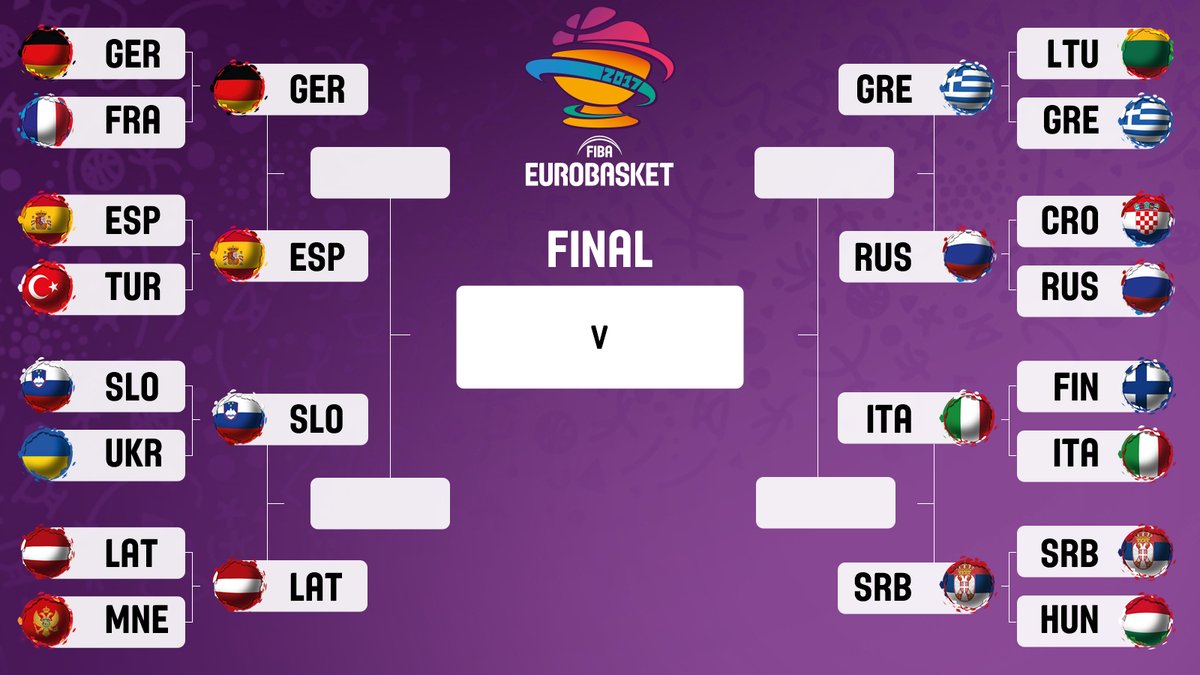На чемпионате Европы по баскетболу сыграны все матчи 1/8 финала. Восемь лучших команд продолжат борьбу на турнире. Четвертьфинальные поединки пройдут 12 и 13 сентября.