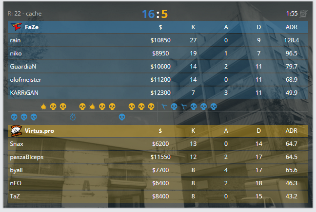 Вторая карта, - de_cache для Faze Clan и Virtus.Pro. Камня на камне не оставили «галактикос» от польских мишек, выиграв со счётом 16-5.