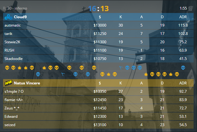 Почти параллельно прошли две встречи: Astralis – Team Liquid, и Natus Vincere – C9. Для первой пары игра на de_mirage закончилась победой датчан, 16-13. Для второй, - de_inferno стало камнем преткновения для NaVi, 13-16 для С9.
