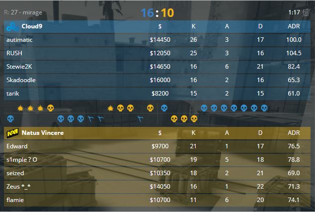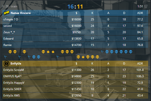 Еще одна встреча СНГ-коллектива и команды из Северной Америки уже в серии best of 3 на картах de_mirage, de_train и de_overpass. Пик американцев был неплох в исполнении обеих команд, но «облачные» не отдали сторону защиты, 16-10. «Поезда» можно назвать только одним словом – качели, которые СНГ-коллектив проигрывают, и покидают турнир, не защитив свой титул, 16-11.