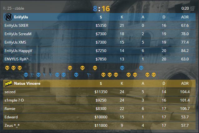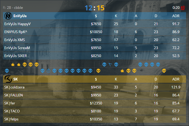 Первым матчем дня была стычка между SK Gaming и EnVyUs. Карта, - de_cbble, равная игра от оппонентов, вот только бразильцы подтвердили свой статус «топ 1» мира, 16-12.