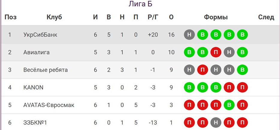 Турнирная таблица. Corporate league. Лига «Б»