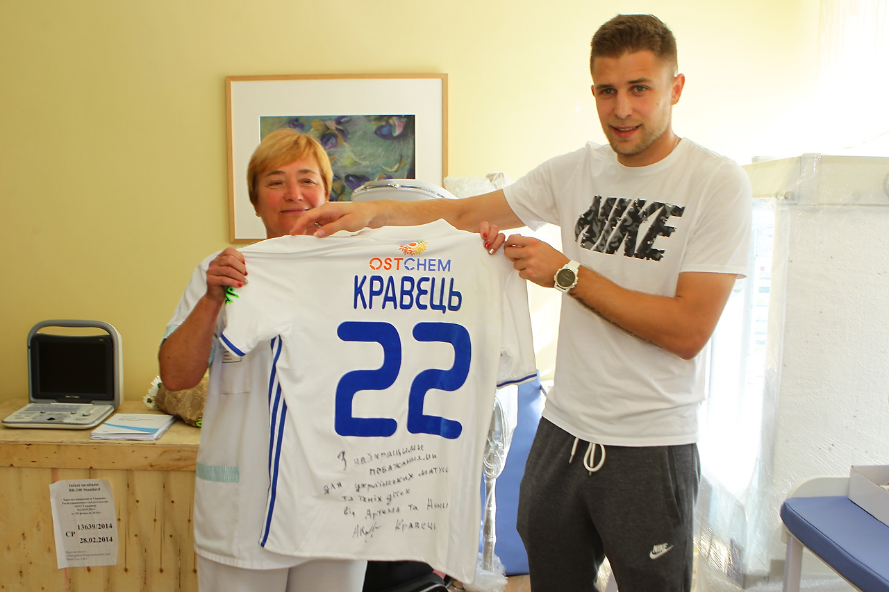 Форвард киевского «Динамо» Артем Кравец и его жена Анна на вырученные от аукциона деньги купили оборудование в родильное отделение центральной районной больницы города Сокаль Львовской области. В конце прошлого года Кравец начал масштабный благотворительный аукцион.