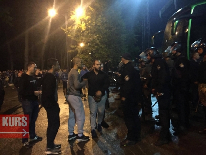 Далі правоохоронці відтіснили фанів від автобуса. З правоохоронцями розмовляли представники львівських ультрас. Однак від автобуса ті не відійшли. Врешті, вболівальники відступили і сховалися від дощу під дерева. Представники ультрас повідомили вболівальникам, що про щось домовилися з гравцями, однак про що саме – не уточнювали.