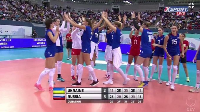 Женская сборная Украины уступила России в первом матче чемпионата Европы-2017, который проходит в Баку. Дважды уступая в счете по ходу встречи, украинки находили в себе силы отыграться, но в решающей пятой партии все же были сильнее россиянки.