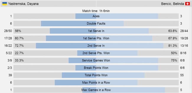 Даяна Ястремская (Украина) – Белинда Бенчич (Швейцария) – 2:6, 3:6