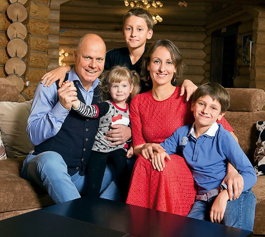 Елена Витриченко с мужем Алексеем Боровиковым, сыновьями Двидом и Цезарем и дочерью Авророй