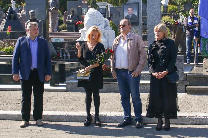 У могилы Андрея Леонидовича собрались члены его семьи, родственники, друзья, бывшие партнеры по команде, близкие люди. На памятнике Андрей Гусин запечатлен в прыжке, летящим за мячом.