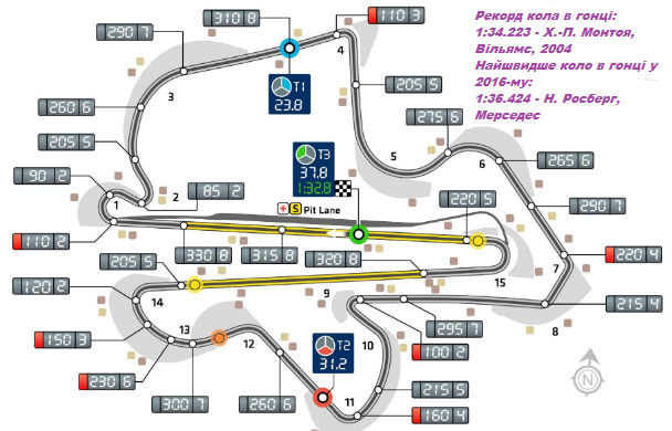 кваліфікація: 1:32.582 (2005, Фернандо Алонсо) гонка: 1:34.223 (2004, Хуан-Пабло Монтоя) |