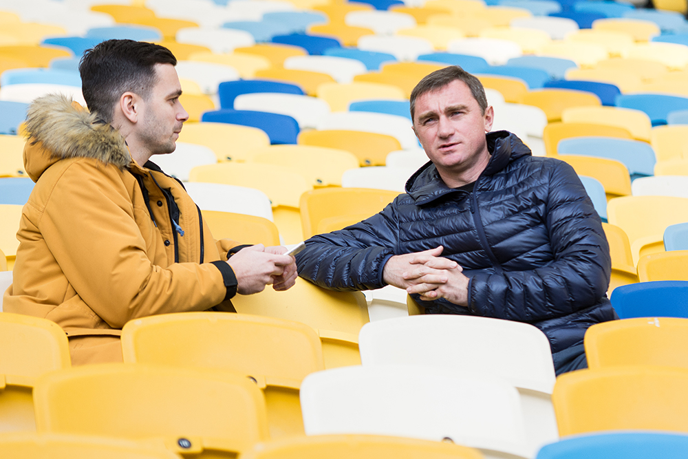 Об интервью с Андреем мы договорились достаточно быстро, тем более, что место для его проведения было подобрано не случайно. Руководство НСК «Олимпийский» с радостью согласилось открыть свои двери для экс-игрока сборной Украины, который, как оказалось, является не фартовым ее болельщиком.