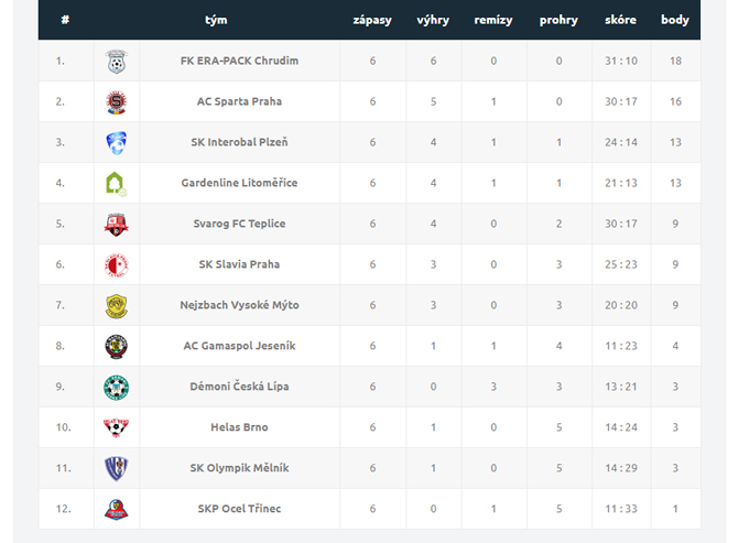 С абсолютным результатом «ЭРА-ПАК» продолжает возглавлять турнирную таблицу, опережая на 2 очка своего ближайшего преследователя пражскую «Спарту». Свой следующий матч команда Фелипе Конде проведёт 26 октября, в четверг – на своей площадке «ЭРА-ПАК» будет принимать «Сварог».