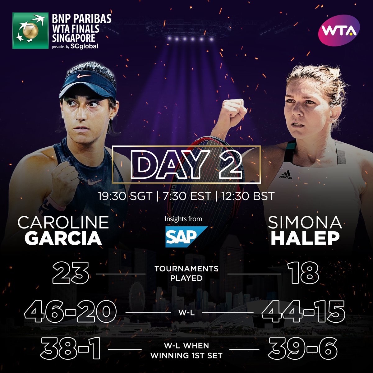 Поединок Симоны Халеп и Каролин Гарсии открывал программу игрового дня.