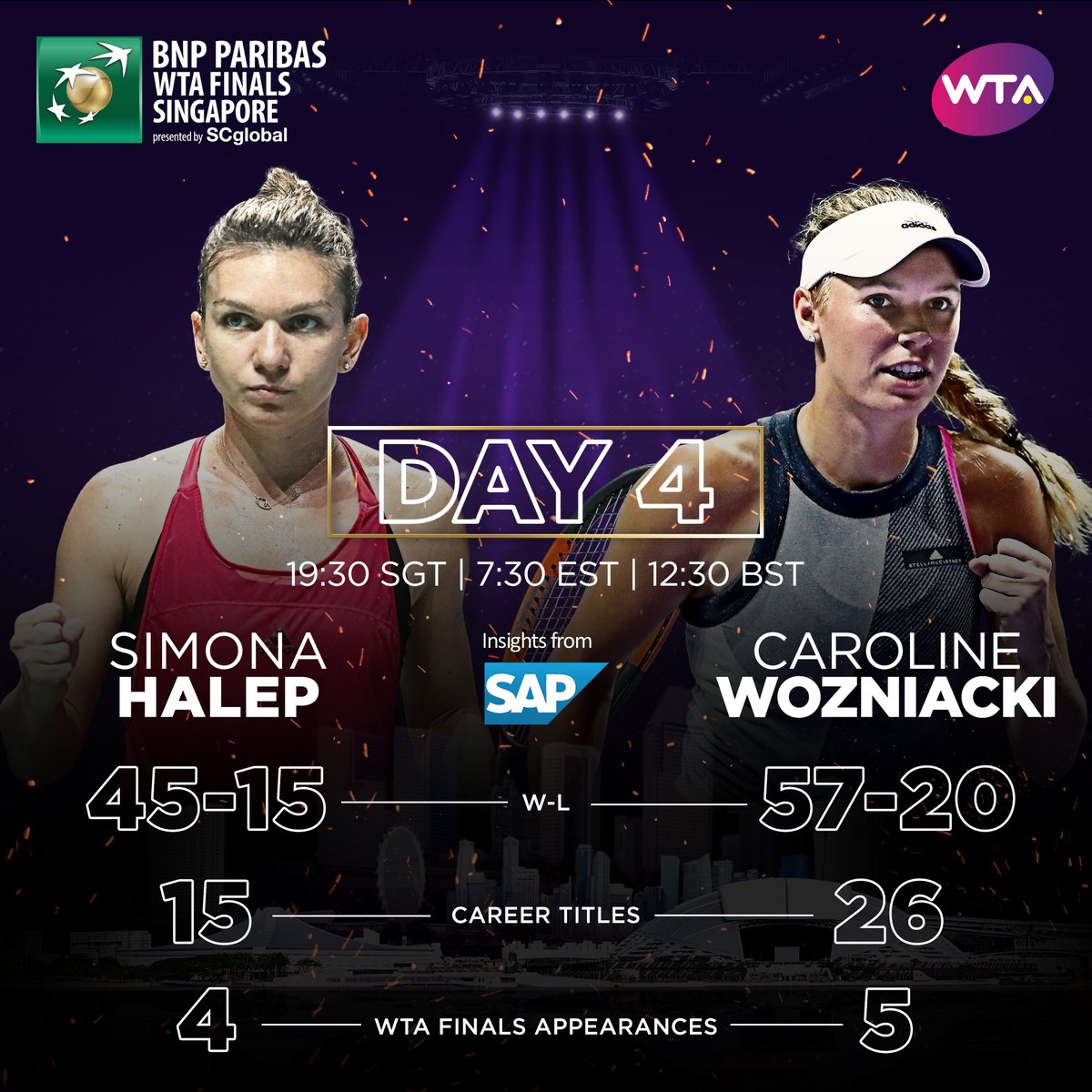Поединок Симоны Халеп и Каролин Возняцки открывал программу игрового дня.