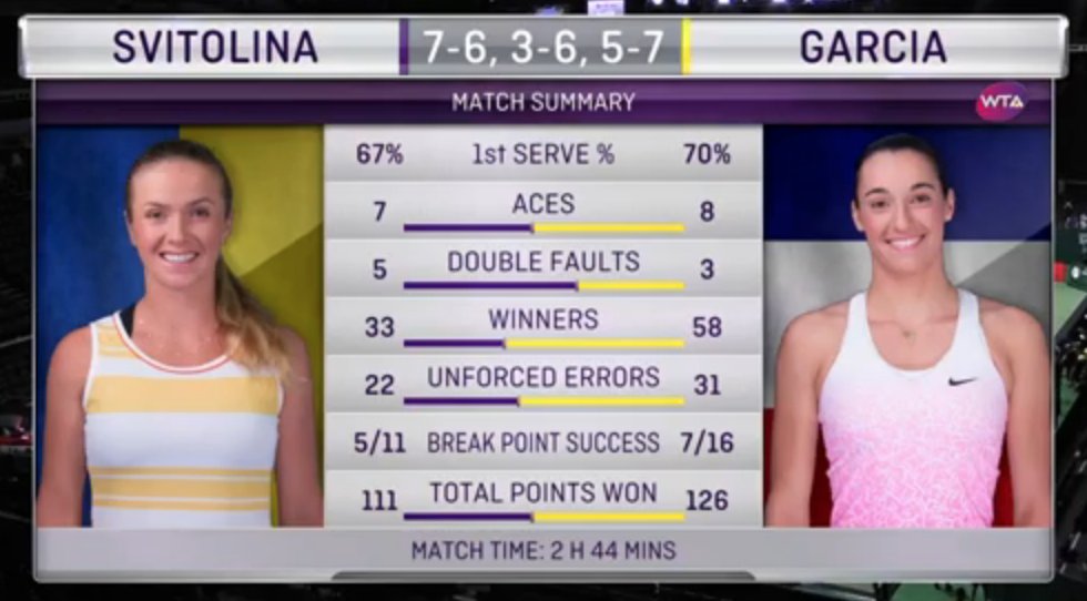 Элина Свитолина (Украина) – Каролин Гарсия (Франция) – 7:6, 3:6, 5:7