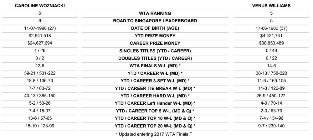 В главном матче турнира встретились Каролин Возняцки и Винус Уильямс.