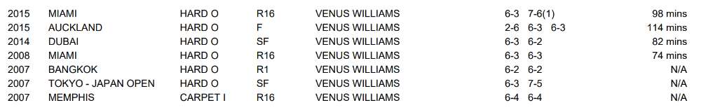 Все 7 предыдущих матчей между теннисистками закончились в пользу американки: