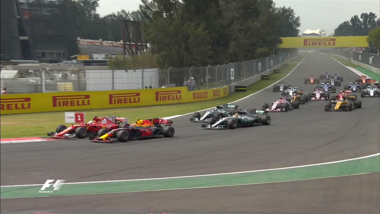 Минулого разу коли з першого ряду стартували Себастьян з Максом, а це, нагадаю, було в Сінгапурі гонка для обох закінчилася на першому колі. Тож і в Мехіко всі чекали «гарячого» старту, але не настільки як у вересні. Очікування не підвели – на прямій Феттель тримався попереду, але в поворот заходив уже разом із Ферстаппеном. В другому віражі між машинами лідерів стався контакт – Макс вийшов вперед, а на Феррарі було пошкоджено переднє крило. Ситуацією миттєво скористався Хемілтон, який спробував обігнати німця і вже вийшов вперед, проте в третьому повороті і між ними відбувся контакт, але ще більший та відчутніший, ніж кількома секундами раніше. В результаті на Мерседес стався прокол заднього правого колеса, а переднє крило на Феррарі зазнало відчутного руйнування, тож обоє їхали в бокси. З тією різницею, що Себастьян їхав третім, а Льюіс пропустив усіх. Добрим вийшов старт у Окона, Хюлькенберга, Сайнса і Переса – всі вони у стартовій штовханині перших трьох поворотів проскочили вперед повз Райкконена.