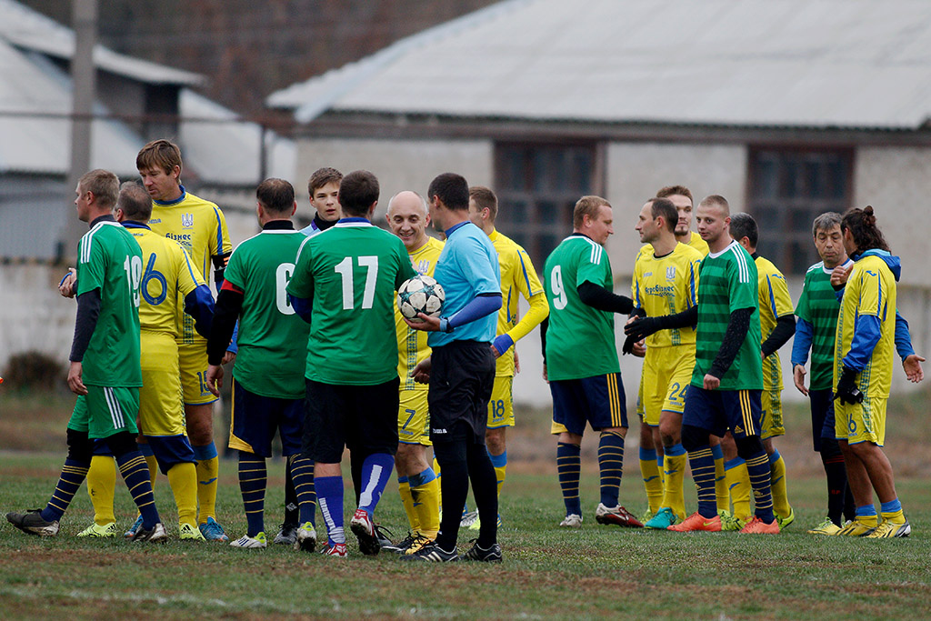 Але свято футболу відбулося. Місцева команда, що виступає у першості області, намагалася створювати гольові моменти і вряди-годи це їй вдавалося, а коли за рахунку 0:2 місцева команда таки зуміла взяти ворота Святослава Сироти, вболівальники на стадіоні «Колос» вволю пораділи. Однак клас є клас: збірна України перемогла із рахунком 3:1 (забили – Юрій Грицина, Богдан Шершун та Сергій Нагорняк) і майстерність іменитих гравців не залишила байдужою шанувальників футболу. До речі, новачок команди ветеранів, за яку можна грати після настання 35 років, Богдан Шершун забиває вже у другому поспіль матчі на великому полі. З усього видно, що 36-річний володар Кубка УЕФА підсилив команду.