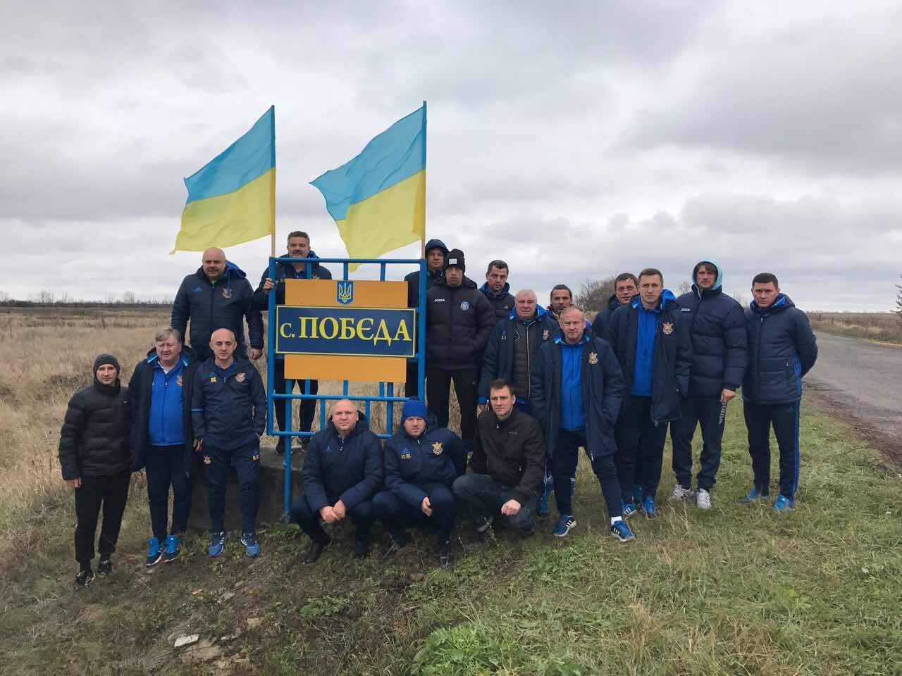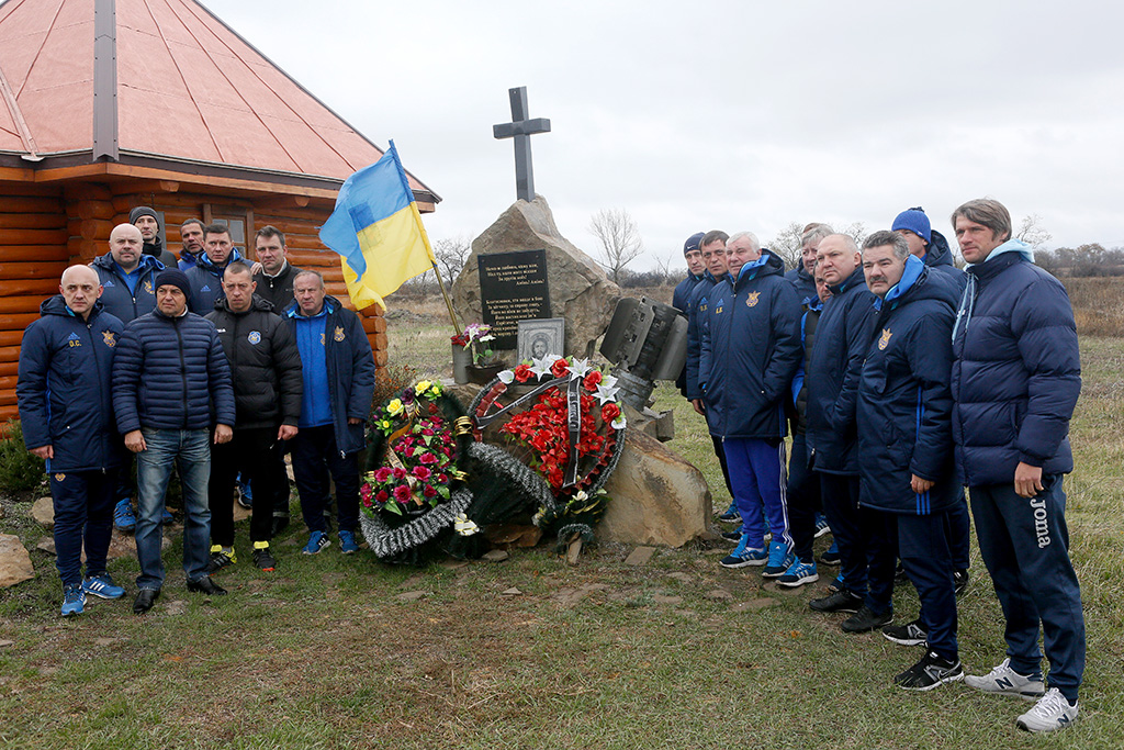 Також віддали гравці данину пам'яті і армійцям, котрі пішли від нас. 3 вересня 2014 року відбулась трагічна подія в історії України, коли було обстріляне селище Побєда, загинули 18 військових. Тепер на цьому місці каплиця і пам'ятний знак, вінок до якого від збірної і всієї футбольної сім'ї країни поклали Анатолій Дем'яненко і Вадим Цимбалюк, молодий хлопець, який нині мешкає у Волочиську і дивом врятувався того страшного дня.