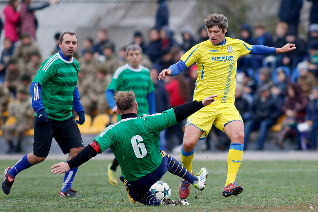 Але футбол - це лише частина місії команди ветеранів у зоні АТО. До гри збірна України привітала військових 14-ї окремої механізованої бригади, які прийшли на стадіон подивитися матч. Ветерани добре знайомі з вояками, адже вже навідувалися раніше в гості до цієї бригади, що дислокується у Володимир-Волинському. І цього разу не обійшлося без подарунків та спільного фото. У самій же грі на стадіоні «Колос» ветерани дали можливість виступити у складі збірної військовому Ігорю Самонову, який відіграв на правому фланзі півзахисту доволі впевнено.