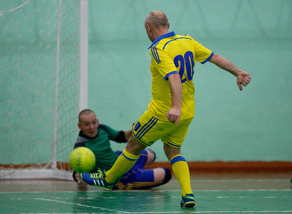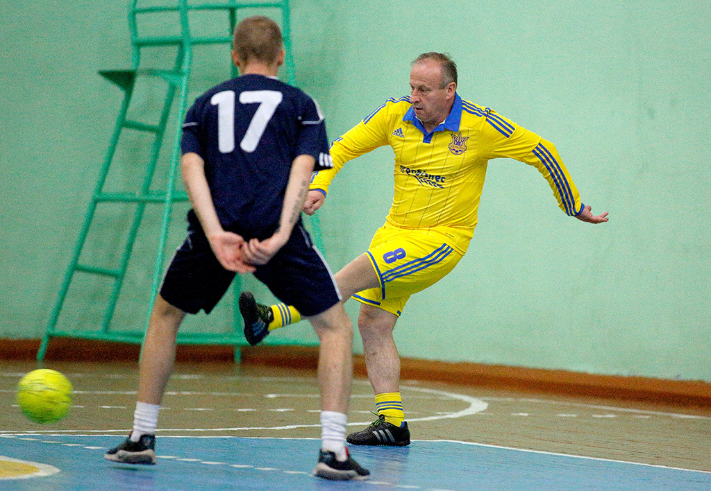У Старобільську футбольні ветерани відвідали одну з військових частин, на запрошення вояків скуштувавши солдатський обід. Після цього відомі футболісти зіграли у футзал з об’єднаною командою Луганського Національного Університету імені Тараса Шевченка та 8-го окремого полку спеціального призначення. Матч вийшов доволі видовищним: іменитим ветеранам часами було непросто вправлятися зі спритними вояками та студентами на швидкому паркеті. Врешті-решт, майстерність взяла гору над молодечим завзяттям, але з невеликою перевагою – 7:5. Хет-трик у складі збірної України зробив Олег Собуцький, дубль на рахунку В’ячеслава Свідерського, ще по м’ячу провели Едуард Цихмейструк та Віталій Самойлов. Те, що головне не результат, а підтримка бойового духу й гарного настрою, наші ветерани вкотре підтвердили, подарувавши після матчу футбольні подарунки своїм «опонентам», а також два національних прапори з автографами зірок українського футболу.