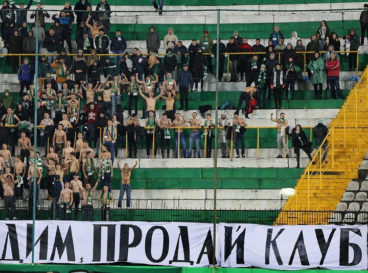 Фаны «Карпат» просят президента клуба Петра Дыминского продать клуб.