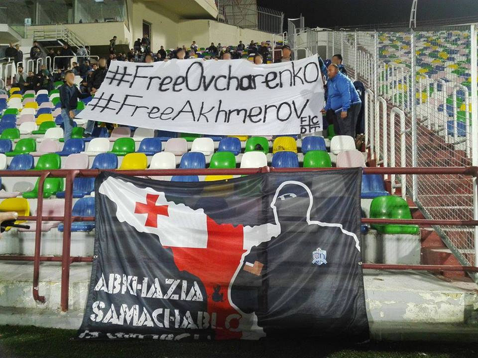Фанаты тбилисского «Динамо» выразили поддержку луганским ультрас Владу Овчаренко и Артему Ахмерову, которых осудили на 17 и 13 лет тюремного заключения за сожжение флага так называемой ЛНР.