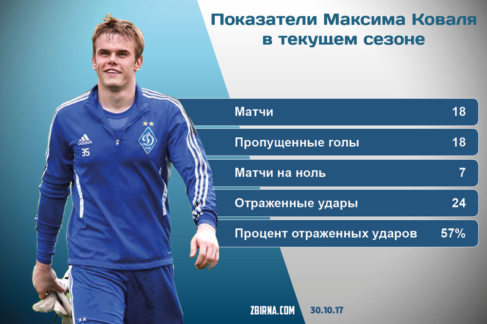 Вратарь киевского «Динамо» Максим Коваль показал ужасные показатели по отражению ударов в текущем сезоне.