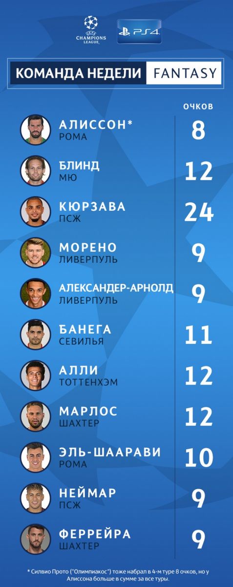 Потому Неймар 9 баллов, Марлос 12 баллов, Кюрзава (забил 3 гола) 24 балла.