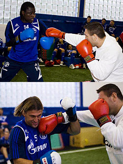 Чемпион и его тренер Михаэль Тимм посетили тренировочный центр команды Бундеслиги «Шальке 04», где тренеры боксера и команды, Тимм и Марко Сломка подвергли всю футбольную команду необычной боксерской тренировке.