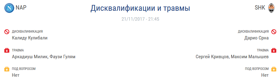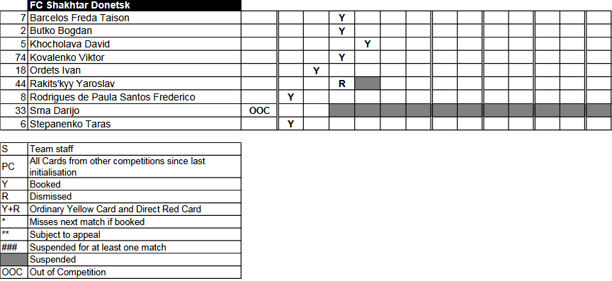 Официальный сайт УЕФА объясняет отсутствие экс-капитана «Шахтера» Дарио Срны в составе горняков его дисквалификацией. В матч-центре и официальном документе УЕФА хорватский защитник числится выбывшим из состязаний. Это означает, что дисквалификация действительна, как минимум, до конца сезона 2017/18.
