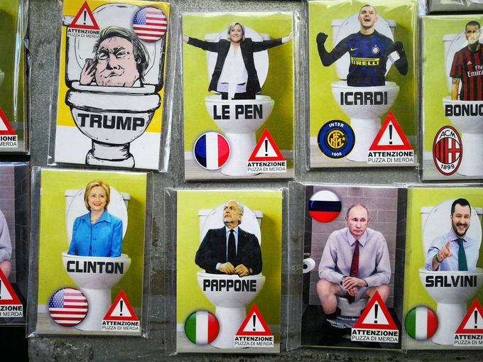 Уличная торговля гибко реагирует на вкусы покупателей. Шарфы, футболки, значки, знамена, шапки, и даже игрушки на выбор. Матчевые «розы» — 5, обычные — 10 евро.