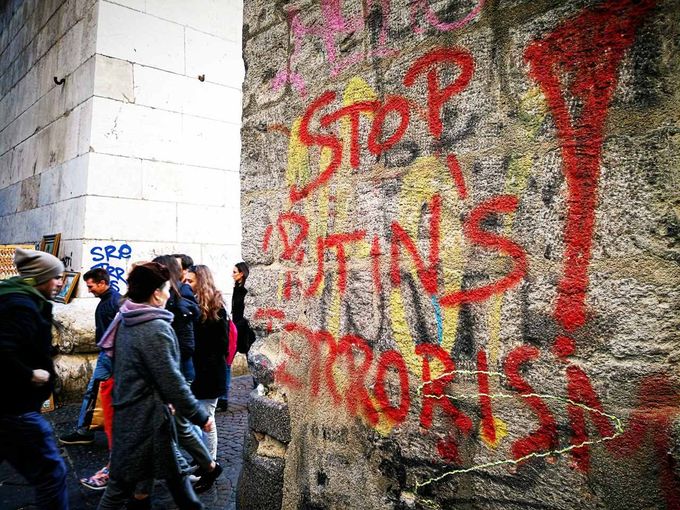 Кстати, о политике. О пристрастиях города, который традиционно симпатизирует левым силам, красноречиво говорят уличные граффити. Стены местного университета.