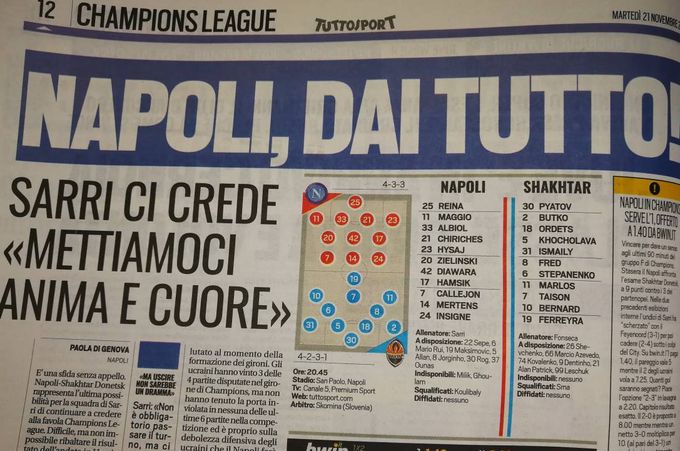 Шумный и неугомонный Неаполь живет футболом. Причем не время от времени, от матча к матчу, а постоянно: футбол — это часть жизни этого южного города, таких, как крики чаек и запах моря на улицах, древняя брусчатка, въевшаяся в старые здания краска граффити, дурная слава города криминала и пицца Маргарита. Все местные, с кем довелось пообщаться, знают, что сегодня матч Лиги чемпионов, знают, что приехал Шахтер, что Марадона — бог, а Ювентус — враги.