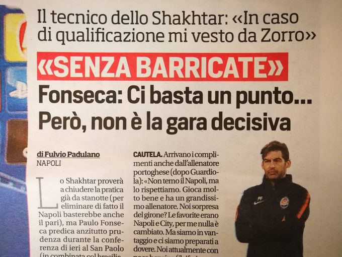 Местные журналисты оценили шутку Фонсеки про то, что он предстанет перед журналистами в случа выхода его команды в следующий этап Лиги чемпионов в костюме Зорро.