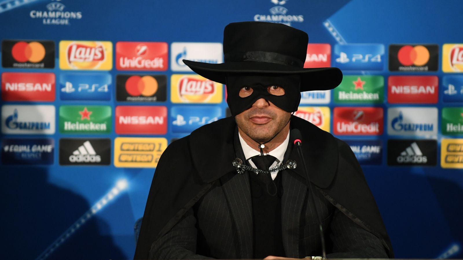 Тренер «Шахтера» Паулу Фонсека сдержал свое слово – пришел на пресс-конференцию в маске «Зорро».