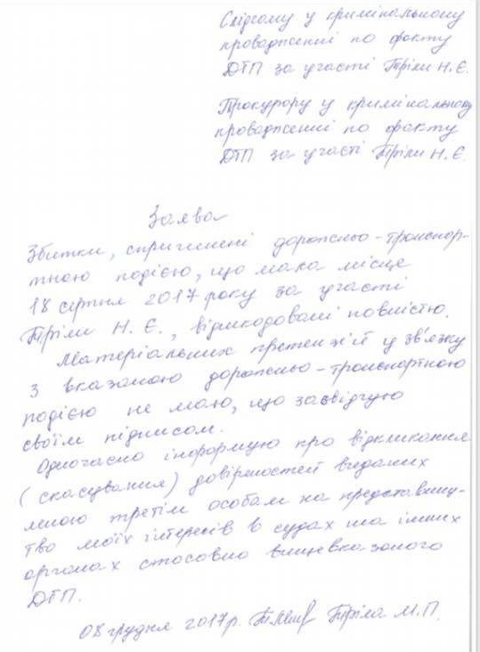 Мария Триль, мать погибшей в результате ДТП девушки при участии автомобиля президента «Карпат» Петра Дыминского, полностью отказалась от претензий, сообщил адвокат водителя Дыминского Андрея Борща Виктор Василюк.