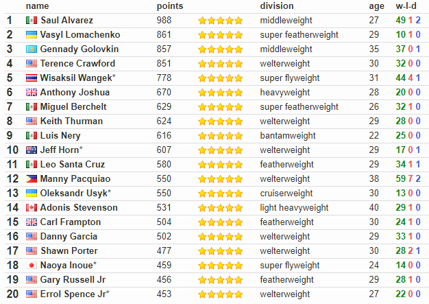Украинский боксер расположился на 2-й строчке BoxRec вслед за Саулем Альваресом