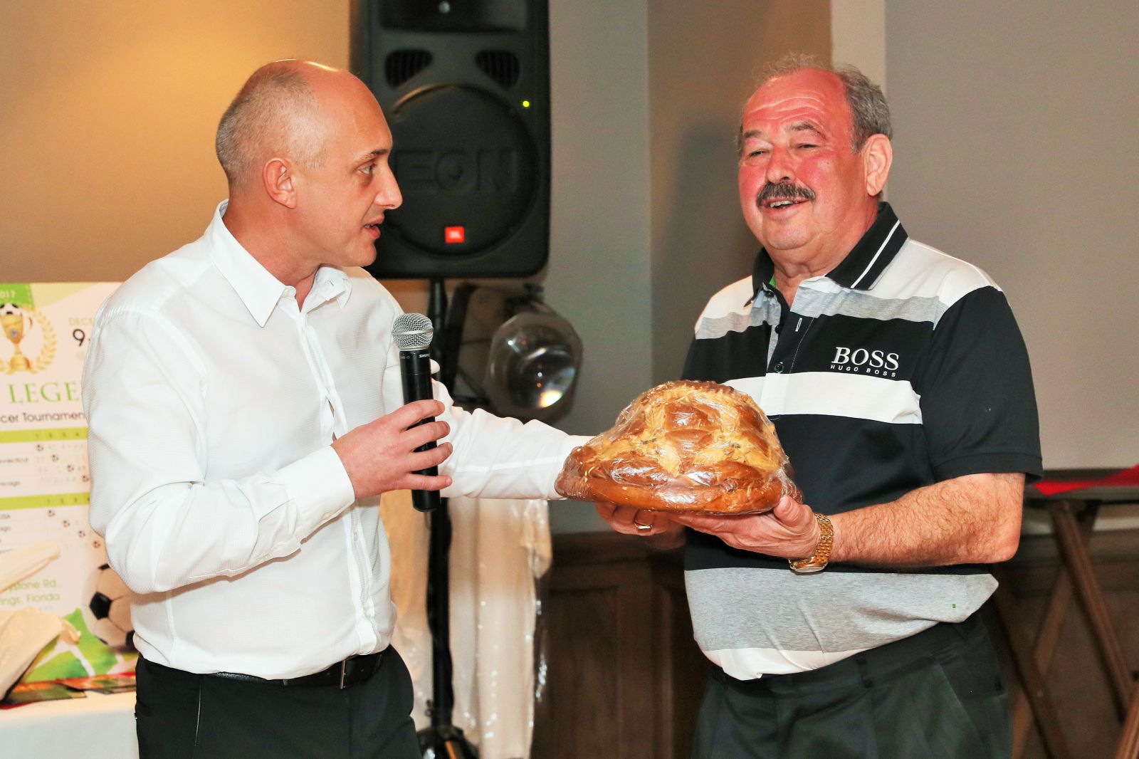Президент Асоціації ветеранів футболу України Олег Собуцький подякував організаторам за запрошення, подарувавши традиційний для українців вияв поваги й вдячності – запашний коровай.