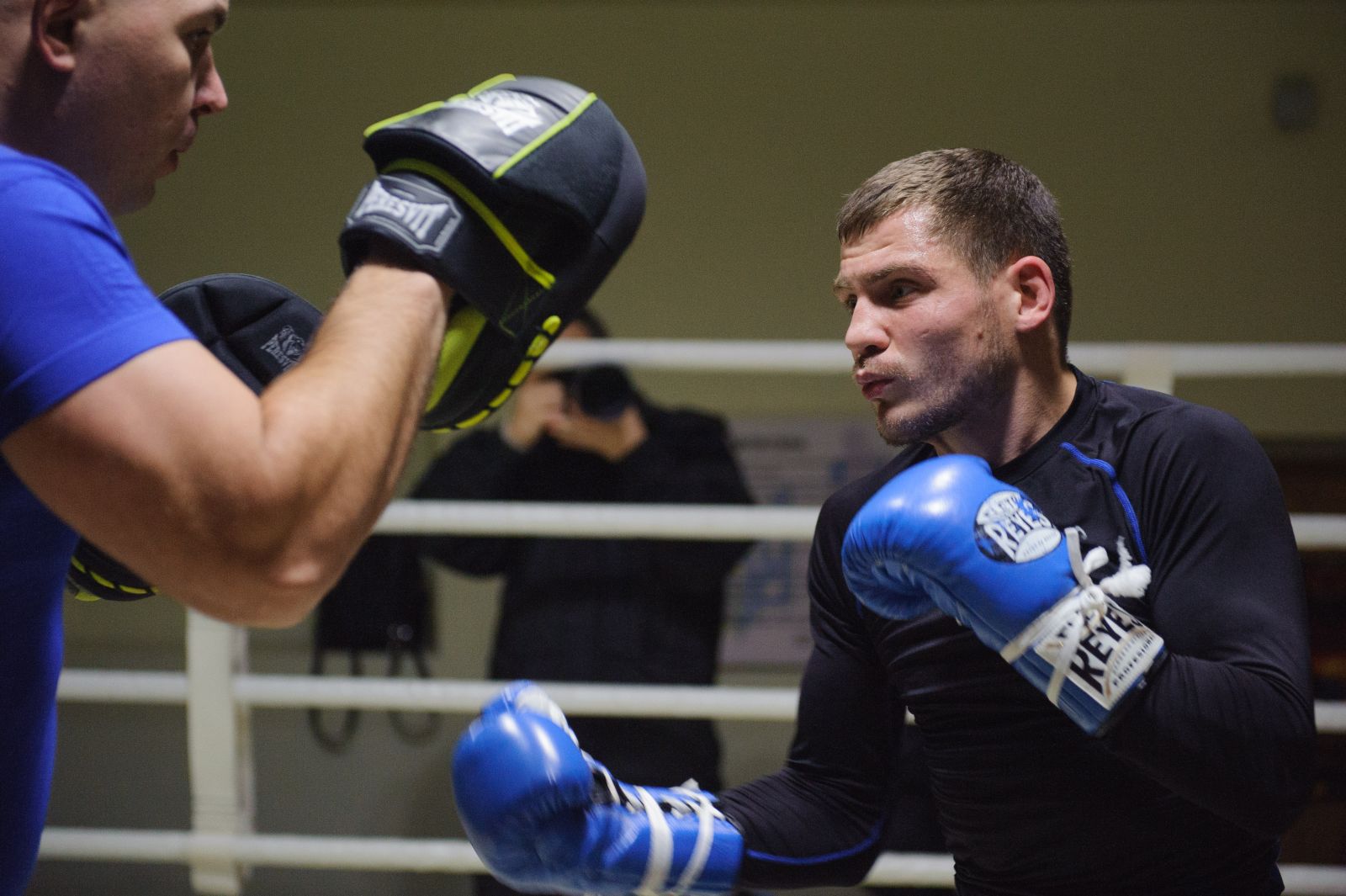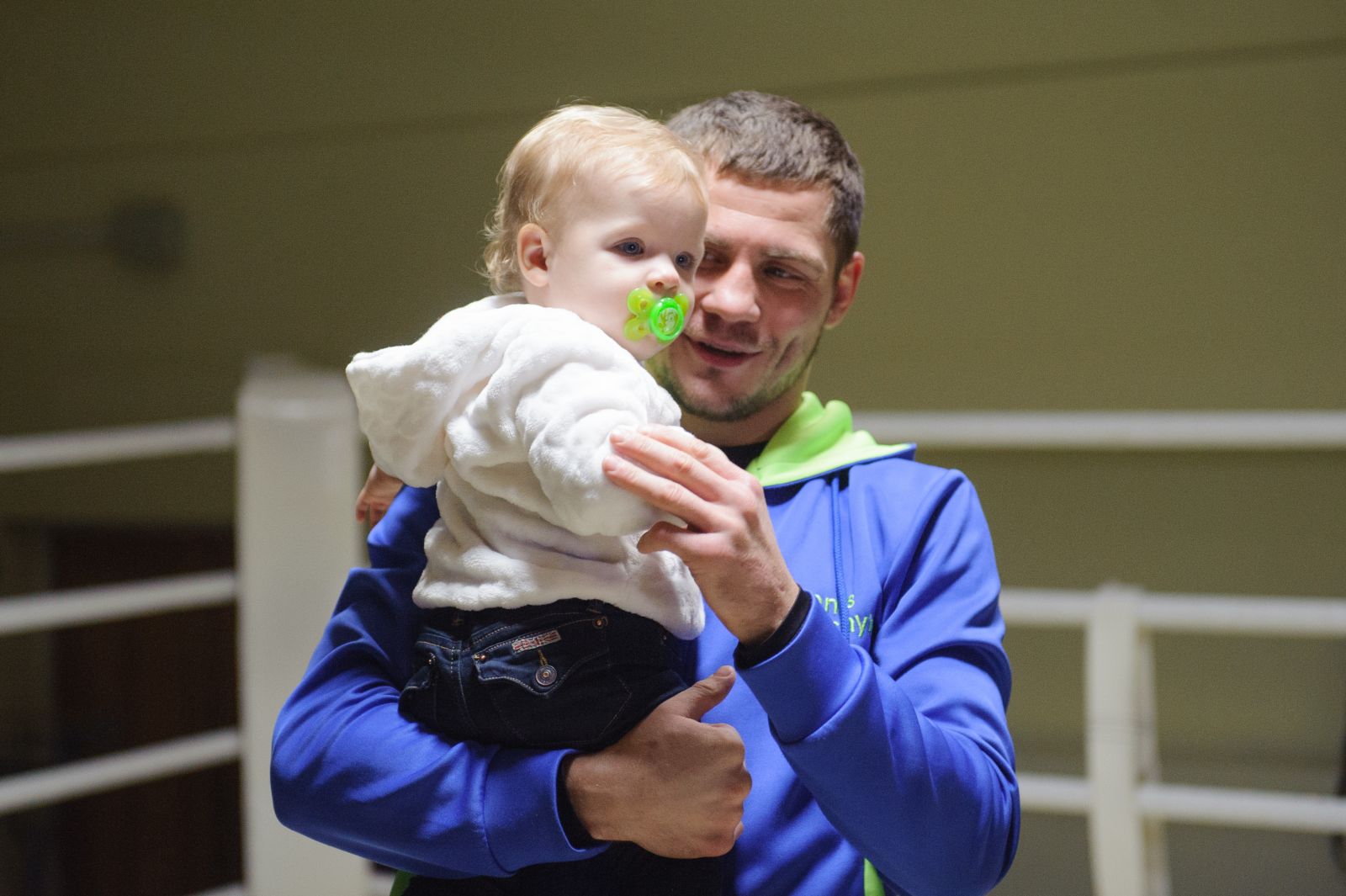 Во время тренировки Денис Беринчик, который 16 декабря сразится за первый титул в профи-карьере, пригласил в ринг свою маленькую дочь Мадину, которая вместе с женой Лианой пришли поддержать его.